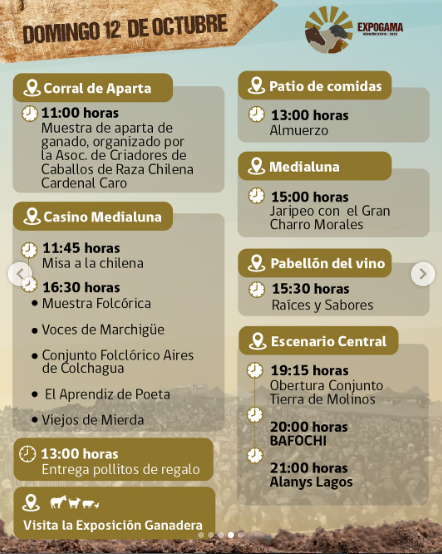 Marchigüe y la Región de O’Higgins se preparan para Expogama 2025, evento que se realizará el 11 y 12 de octubre en la medialuna de la comuna, reuniendo música, gastronomía, folclore y actividades culturales abiertas a toda la comunidad.