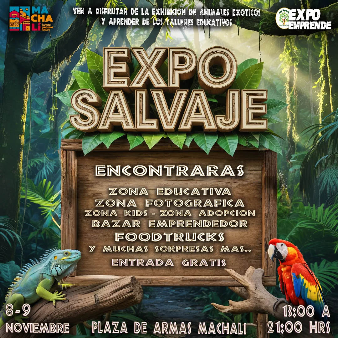Los próximos 8 y 9 de noviembre, desde las 13:00 horas, la Plaza de Armas de Machalí será sede de Expo Salvaje, un evento dirigido a toda la familia que busca combinar educación, entretenimiento y promoción de la responsabilidad hacia los animales.