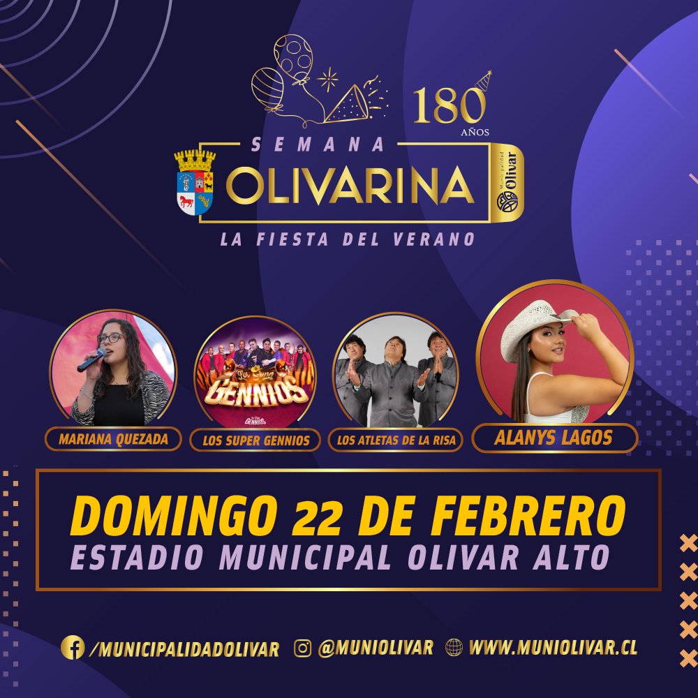 Este sábado 21 y domingo 22 de febrero se realizará el gran cierre de la Semana Olivarina 2026, evento organizado por la Ilustre Municipalidad de Olivar que reunirá a vecinos y visitantes en dos noches de música en vivo, humor y entretención gratuita para toda la familia.
